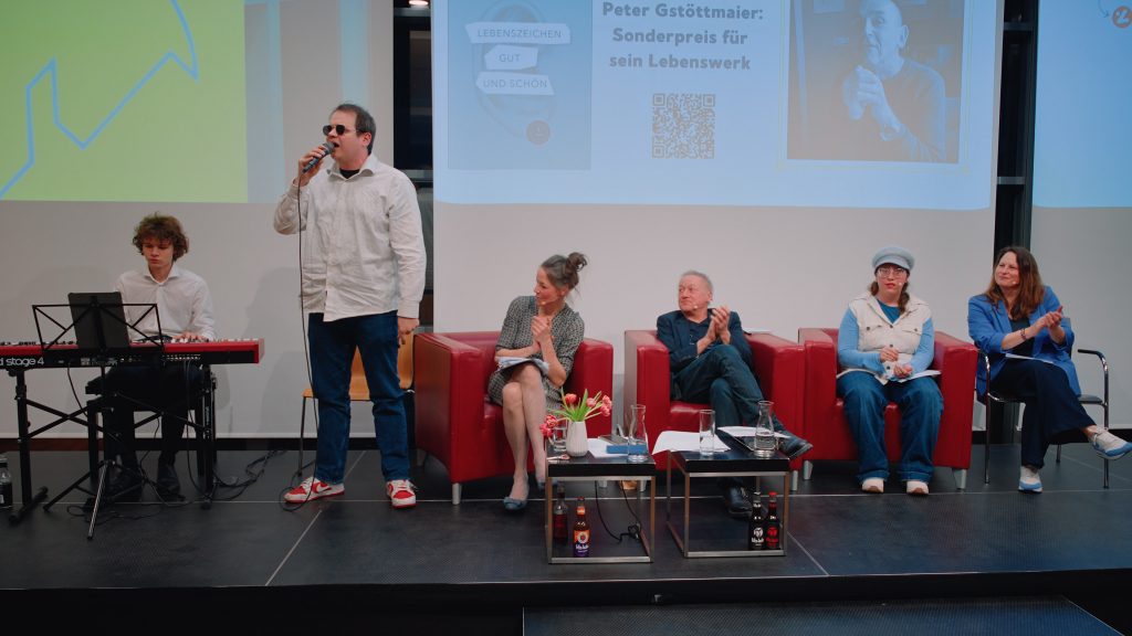 Die prämierten Texte wurden von den Schauspieler:innen Chris Pichler und Markus Hering vorgetragen, während das inklusive Moderationsduo Dani Linzer und Anna-Lina Ernstberger durch den Abend führte und Connor Moser mit Keyboard-Begleitung das Publikum mit seinem Gesang begeisterte.